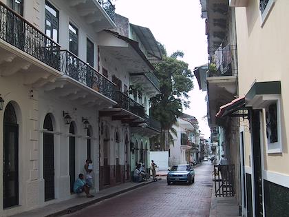 | Here's another strange fruit we tried. Probably wouldn't try it again, but it was interesting. The outside looks like a small round eggplant, and the inside is filled with large seeds with an edible pulp around them. It left a strange gummy paste on my lips. | | This is in the Casco Viejo section of Panama city. It's the old colonial part of the city, with lots of tourist potential, but it's also very dangerous because of gang activity. We were pretty nervous when walking around, and finally decided to get out when a police officer on a bike gave us detailed instructions on where to go and where not to go. |