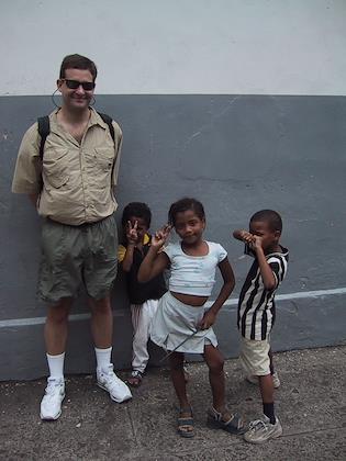 | The ruins of an old convent. | | Outside the San Jose Church (it has a famous golden altar that didn't look too impressive to us), we met a group of young kids who wanted to have their pictures taken. Just from looking at their poses, with the menacing gestures on the part of the boys, they seem very influenced by the world of gangs and rap videos. |