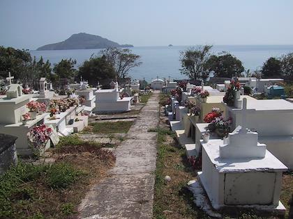 |  | |  | | The street our hotel was on. The island, aside from 2 little minivans, was basically pedestrian only. | | This cemetery is supposed to date from the 1600's, but we didn't find any old headstones. Most of the graves were in bad shape. |