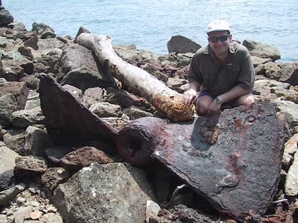 |  | |  | | Eric with an old propeller | | Ruins of the wharf. |