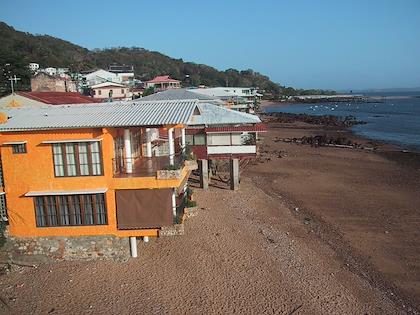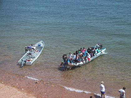 |  | |  | | This is Isla El Morro, which has the Pacific Steamship Navigation Company ruins on it. | | Later in the day, we watched from the restaurant of our hotel while a bunch of kids got ready to go to deliver lunch to the men working on the ships waiting to pass through the canal. Apparently the islanders have a contract to do that, and the kids really enjoy going out to the boats and delivering the lunches in person. |