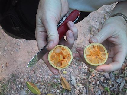 |  | |  | | We found this strange fruit along the way. | | ....and this seed pod from some legume. |