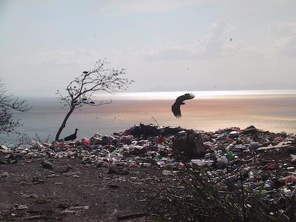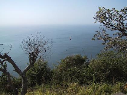 |  | |  | | There's also a wildlife refugee on the island. Unfortunately, on the road that we thought leads there, we found the island dump. It was quite a disappointment to find that. It was on the one place which would have had a great view, too, because it was such a steep slope. Presumably that's why they used that spot, because there was such a large drop-off that the trash would drop down a long ways. | | The funny reddish shadow on the water beyond the trash dump is from the smoke of a big fire burning on the mainland. Lots of fires are set here, mainly to clear out underbrush. |