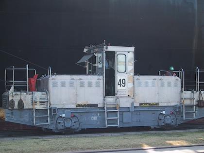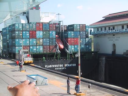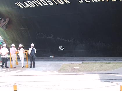 |  | |  | | These locomotives pull the boats through the canal. The engine is made by Mitsubishi, and cost 2.3 million dollars apiece! | | Notice how much the ship goes down |