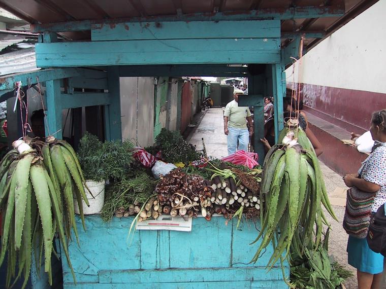 In Panama City, we walked down Avenida Central, the main shopping area. Here they're selling medicinal herbs. The big ones are aloe.