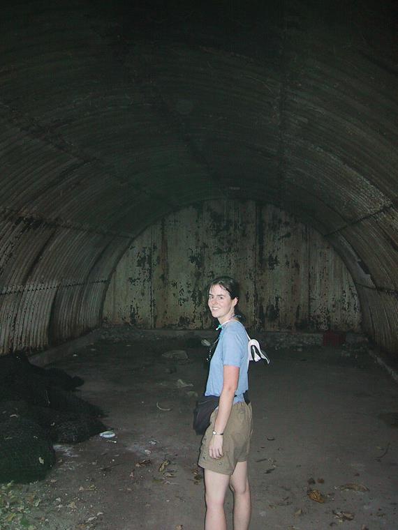 We took a walk on some of the old paths around the island. During World War II, this was strong US military presence here, and you can see many old buildings and foundations. This is an old Quonset hut, built into the dirt.