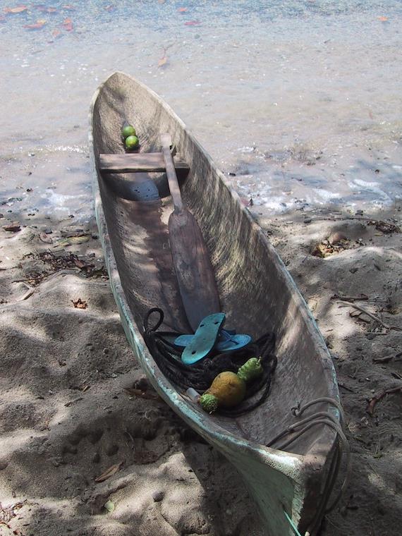 Later on we got a boat to take us to a snorkeling/beach spot on a nearby island. There was a guy there already who was collecting fruits from abandoned farms on the island. This is his little dugout.