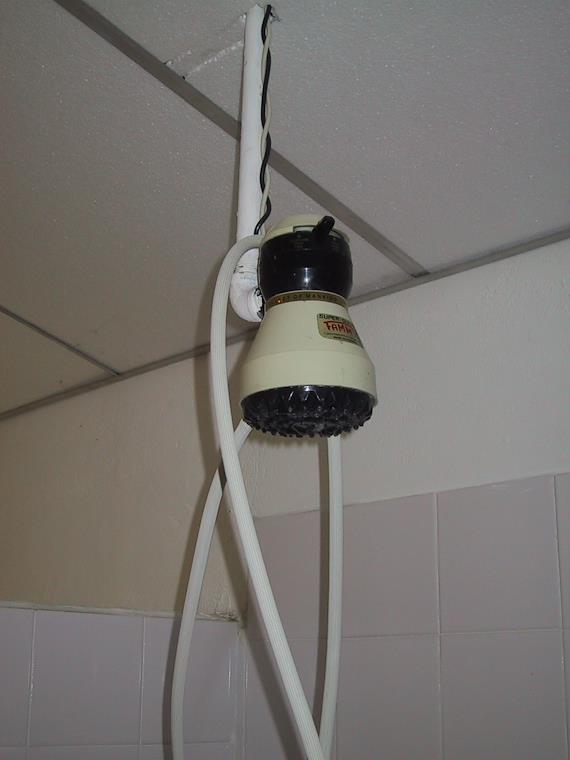 Finally, a shower with hot water! This little device would actually heat water as it came out!