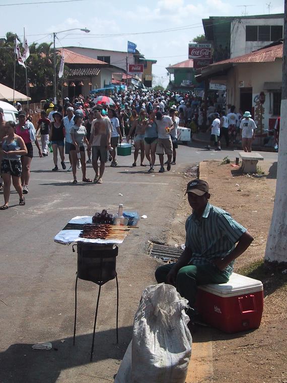 Later we went to the Carnival celebrations in the town of Las Tablas, supposedly the best in the country. We learned that unless you're going to be here the full 4 days of Carnival, you really need to plan your trip for when things are happening. We wanted to see the impressive floats we've heard about, but that was another day. We did see huge crowds of really drunk very young people.