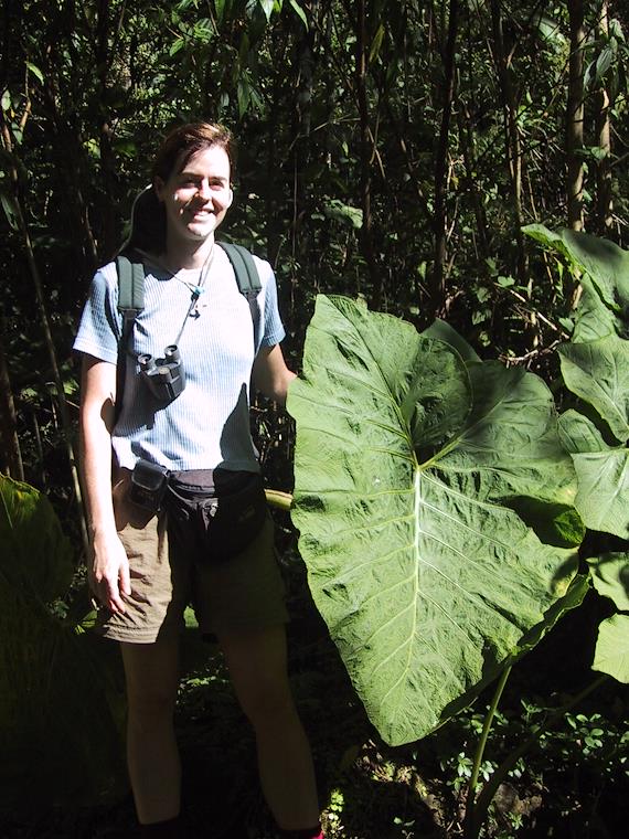 Posing with a giant leaf whose name I don't know.