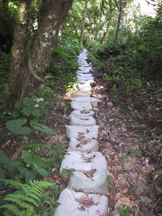 Short sections of the path we walked consisted of coffee bean sacks, filled with dirt and rocks.
