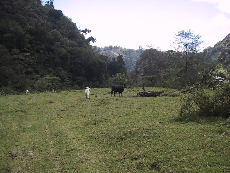 When we walked back, there were cattle in a field that had previously been empty. Eric thought that the black bull was looking at us threateningly. The farmer on the hill across the way saw us hesitating, and (I thought) motioned to us to not go forward. Confused, we tried to find a path along the stream, but failed.