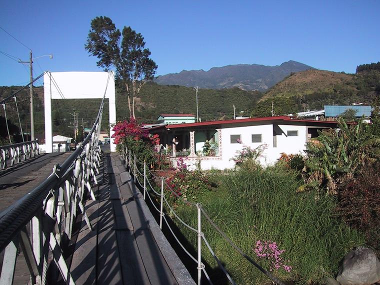 The bridge over the Rio Caldera, with a view of Volcan Baru in the background.
