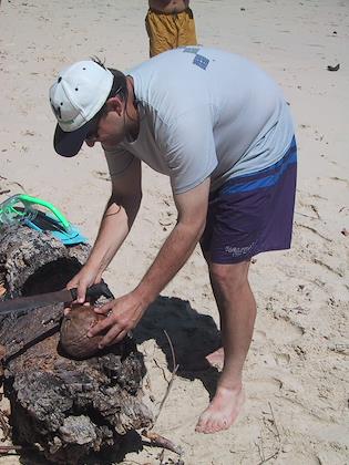 | Eric chops up a brown coconut for meat. | It ended up being a little on the overripe side. Some of the other coconuts we got were great, though. | ||||||||||||||||||||||||||||||||||||||||||||||||||||||||||||||||||||||||||||||||||||||||||||||||||||||||||||||||||||||||||||||||||||||||||||||||||||||||||||||||||||||||||||||||||||||||||||||||||||||||||||||||