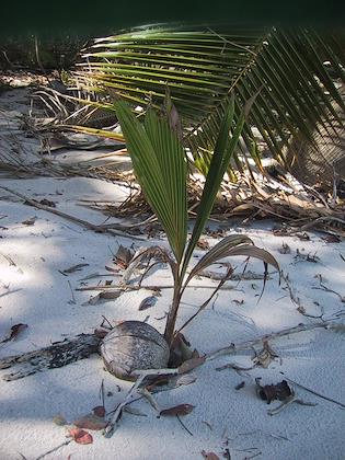 | Hermit crabs were everywhere on the beaches. We held hermit crab races, making a circle in the sand, putting the hermit crabs in the middle, and seeing which one got outside the circle first. These are the tracks of hermit crabs. | Coconut palms sprout just like this. | ||||||||||||||||||||||||||||||||||||||||||||||||||||||||||||||||||||||||||||||||||||||||||||||||||||||||||||||||||||||||||||||||||||||||||||||||||||||||||||||||||||||||||||||||||||||||||||||||||||||||||||||||