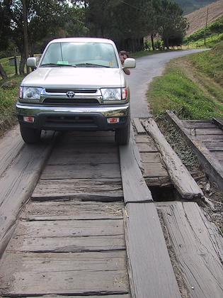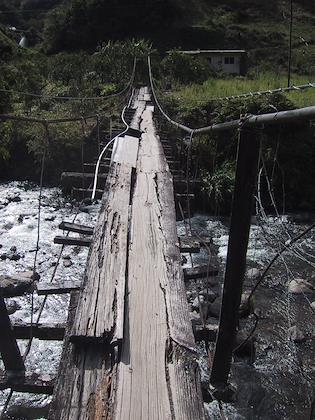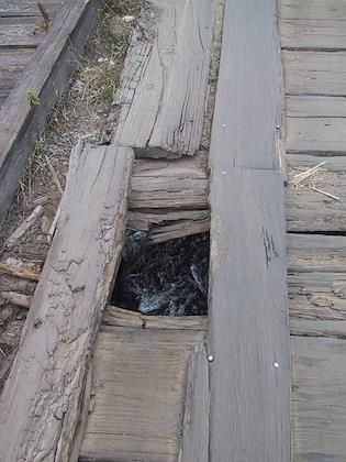 | Leaving town the next morning, I just had to get another bridge picture. We didn't have to cross this one, thank goodness. | It was fixed up with barbed wire. Better watch where you put your hands! | ||||||||||||||||||||||||||||||||||||||||||||||||||||||||||||||||||||||||||||||||||||||||||||||||||||||||||||||||||||||||||||||||||||||||||||||||||||||||||||||||||||||||||||||||||||||||||||||||||||||||||||||||