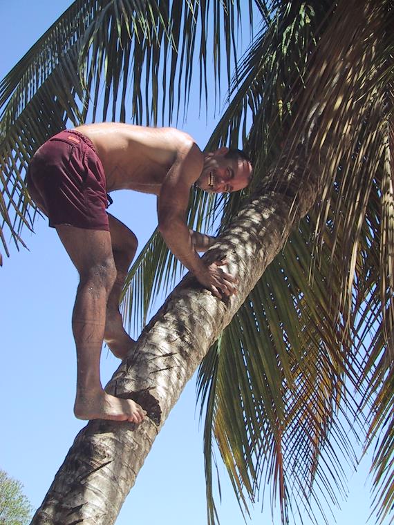 Part 4 Isla Boca Brave, Volcan, Las Bocas del Toro, back in Panama City This is Vince, climbing up a coconut tree. He had just spent a couple weeks in the jungle near Columbia, living with an Indian tribe. He's trying to make this type of travel into a business. Here's his web site.
