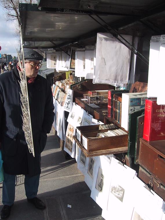 I really liked these little shops along the Seine, which sold mainly old book, manuscripts, prints, and postcards. At night they locked everything up, and you could see nothing but big green metal boxes along the walkway.