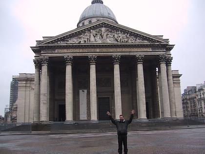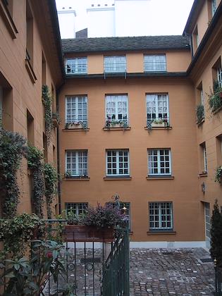 | The next day we walked by the Pantheon on our way to the Mouffetard (a big market street). The Pantheon was built as a church, but is now something like a secular mausoleum. | | A pleasant little courtyard close to the Pantheon |