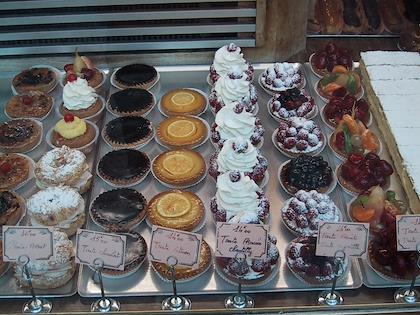 | Pantheon in the background, and the guy who took the picture for us called the green thing a fountain, but I didn't see a place for water to come out. | | Yummy, delicious little tarts in a store window. We tried many pastries like these. I think my favorite was a coffee eclair. |