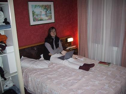 |  | |  | | Nobody famous, just thought the inscription was interesting. It reads in part, "This tomb contains, alas, the three things that made the happiness of this father and husband". Then it lists the two daughters and the mother, both dying in the early part of the 1800s. | | Me, in our hotel room, writing up notes. |