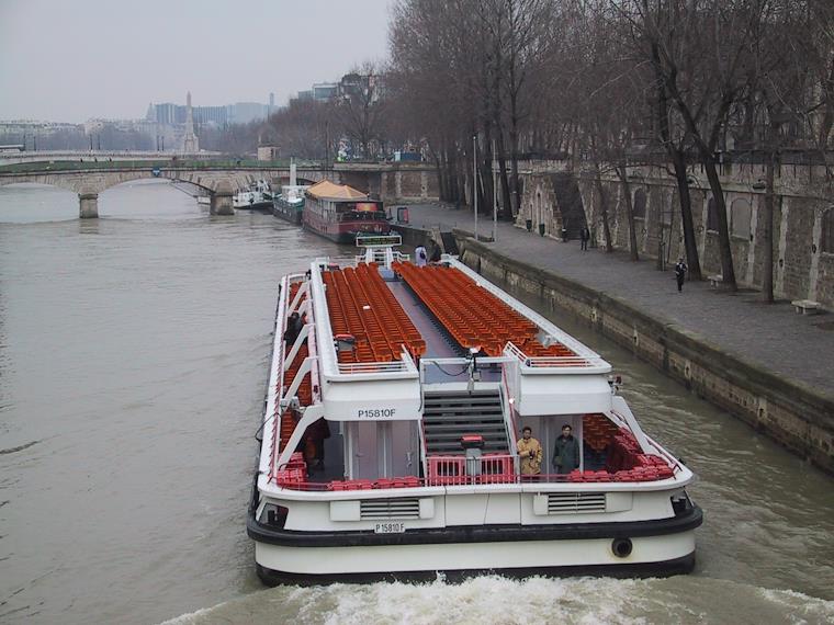 These boats can take hundreds of tourists along the Seine. During the off-season, though, there's just a few on board.