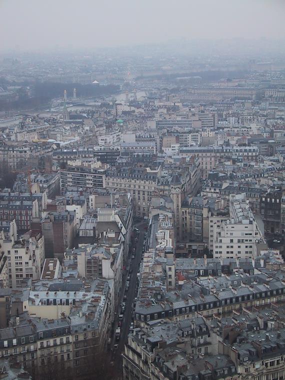 Paris was pretty gray that day. Central Paris has no tall buildings at all, most buildings are 5 or 6 stories in height.