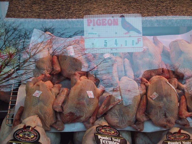 Pigeons for sale! I wondered if they just trapped normal pigeons on the street, or if these are bred. I assume they were bred, since they looked pretty large.