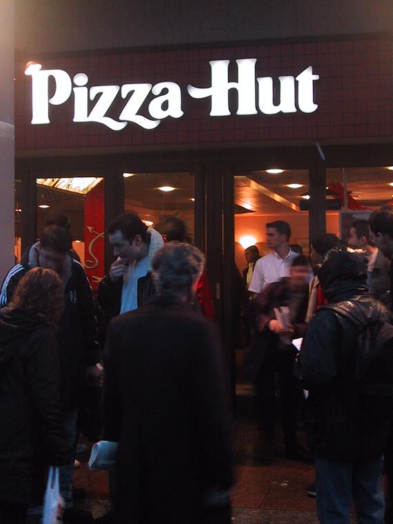 Surprise, surprise--another stike! This time the workers at a Pizza Hut were asking for the public's support while they intimidated customers who wanted to go in. What a joke.