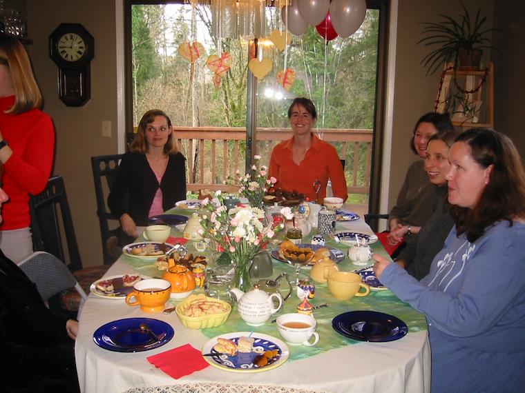Victoria, Jean, and Kelly put on a tea party for me at Jean's house. What a festive table setting!