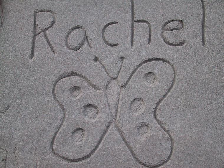 Rachel carved a butterfly into the sand cliff