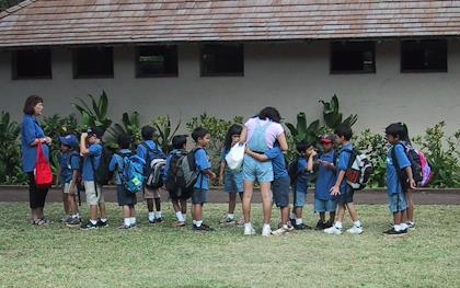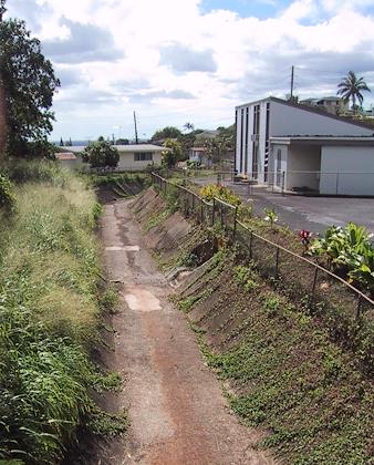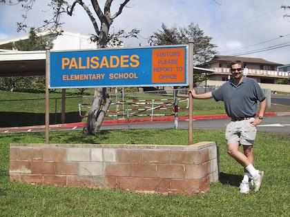 | On the island of Oahu, we visited Eric's old neighborhood, Pacific Palisades, where he lived from age 5 to 10. It didn't change very much! Check out a map of the area. | Pacific Palisades Elementary School. | |