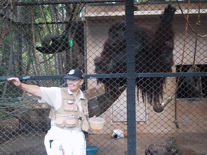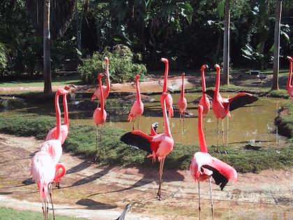 | This is the banyon tree in front of the Honolulu Zoo that Eric remembers very well. | The pink flamingos put on a show for us. They also figured largely in Eric's memories of the zoo. | |
