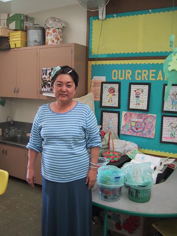 This is the only teacher who was around when Eric was attending the school. She gave Eric and me a lei made of soda can pop tops that her students had made. Unfortunately, we forgot to write down her name.