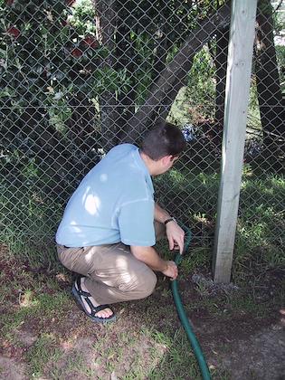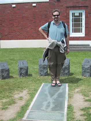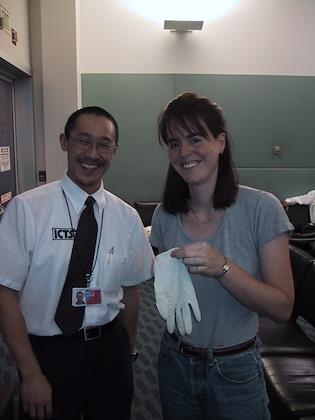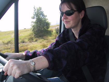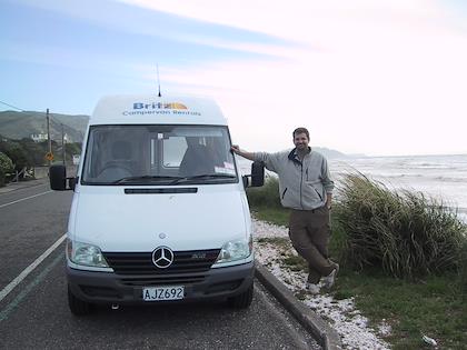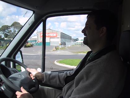 | Poor guy--had to handle Eric's sneakers! Luckily he had gloves on! | | In New Zealand! Holy cow - Eric's driving on the wrong side of the road! The first couple hours were stressful, but he got used to it soon and did a great job driving. |