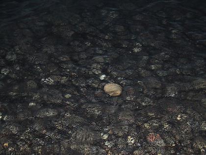 | This visitor center was in the form of a sheep. | | We camped for the night at a "motor camp" next to Lake Taupo. There was a huge volcanic explosion in the late 1800's, and from that lots of pumice laying around. This is a pumice rock floating in the lake - the only rock that floats! |