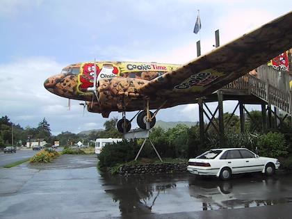 |  | |  | | We stopped for tea at this DC 3 airplane, turned into a cafe. It's advertising a cookie company. | | Really neat clouds on the way south. |