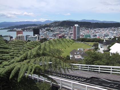 |  | |  | | We took this cable car up to the top of the hill. | | Wellington is a very scenic city, on the water and with lots of hills. |