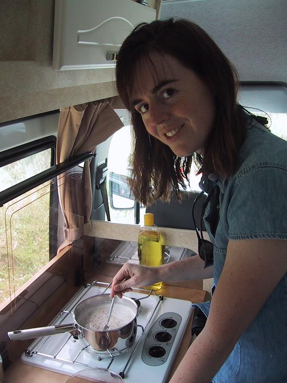 Making breakfast along the way, in a windier spot, to get away from the sandflies.