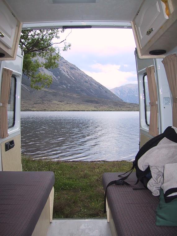 We spent the night at a pull-off at Lake Pearson. Having the doors open makes me feel like I'm outdoors.