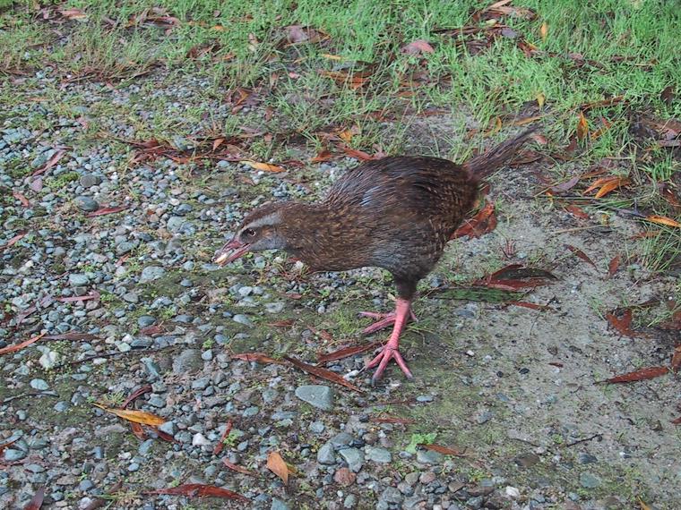 At the old townsite of Goldsborough (old gold-mining town), we found this weka, or wood hen, at the parking lot. It's a common flightless bird.
