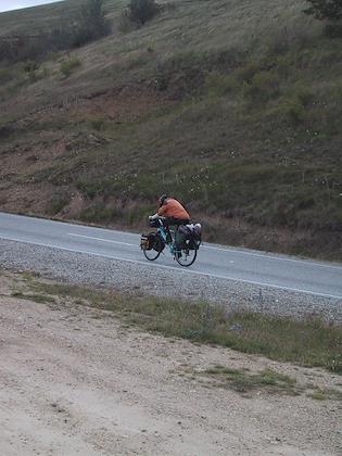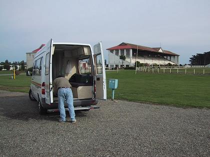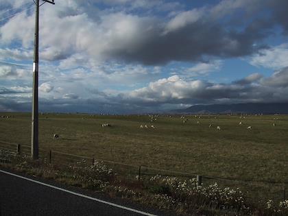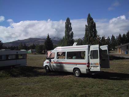 |  | |  | | Later on, as we drove over Lindis Pass, we saw this biker. It would have been great to have bikes with us, to take little tours. But as a means of transport, it seems like a very hard way to travel. | | The motorcamp in Twizel had lots of wide-open spaces. |