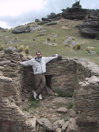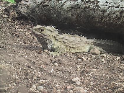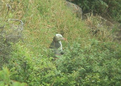| It was incredibly windy here. I had to have Eric provide a windbreak for picture-taking so that the camera would stay steady. | | We saw more yellow-eyed penguin here on this beach, from a little blind. |