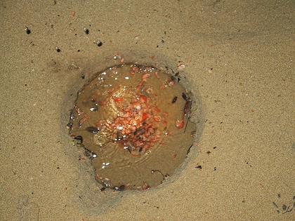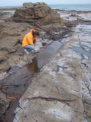 | A little pool, made from a drip in the ceiling, where krill get trapped. | | There were yellow-eyed penguin nesting in the back of the cave! I guess that means that the tide doesn't come all he way in. |