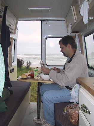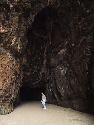| The owner of this van wrote some of his social commentary on it. Kind of like a do-it-yourself bumper sticker. | | Cathedral Caves. These were a set of about 6 or 7 awesome massive caves, carved out by the ocean. We weren't able to explore as long as we would have liked, because the tide was coming in. A few days after we were here, 4 people drowned in New Zealand because they stayed out on a reef, collecting seashells, while the tide came in. |