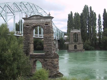 |  | |  | | The ocean is so cold in the South Island that instead of selling swimsuits, they sell little kiddie wetsuits. | | The old Alexandra bridge. |