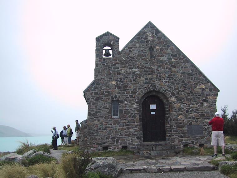 This is a famous tourist shot in New Zealand - the Church of the Good Shepard, on Lake Tekapo, with a view of Mt. Cook (in the rare instance that it's out!)