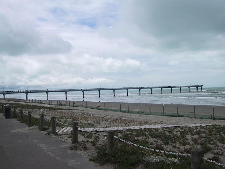 The town of New Brighton, north of Christchurch, has a great pier that extends far into the water.