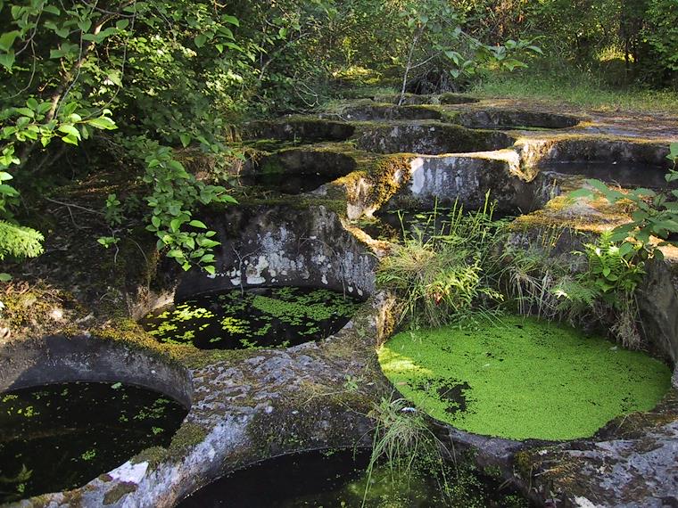 On Gabriola Island, millstones for crushing wood for paper had been made out of the local stone. We stopped at one of the sites where this was done. It's a strange looking place. Wonder what we would have guessed it was for, if we didn't know about the millstones.