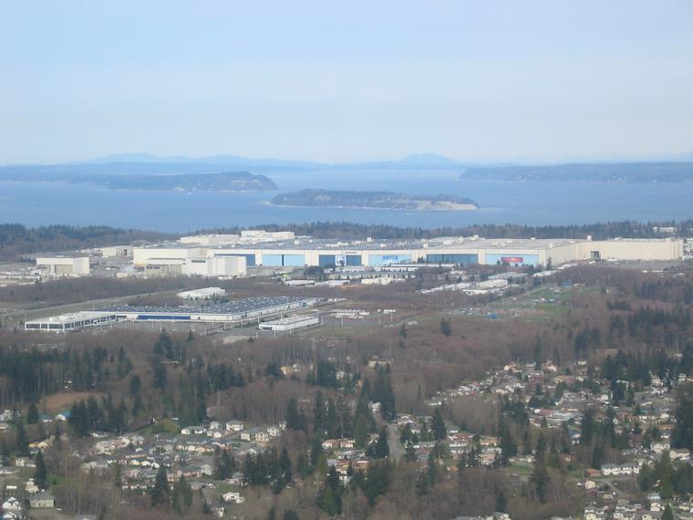 Boeing's Everett facility where 767's are built. In the distance you can see Gedney, Whidbey and Camano Islands.